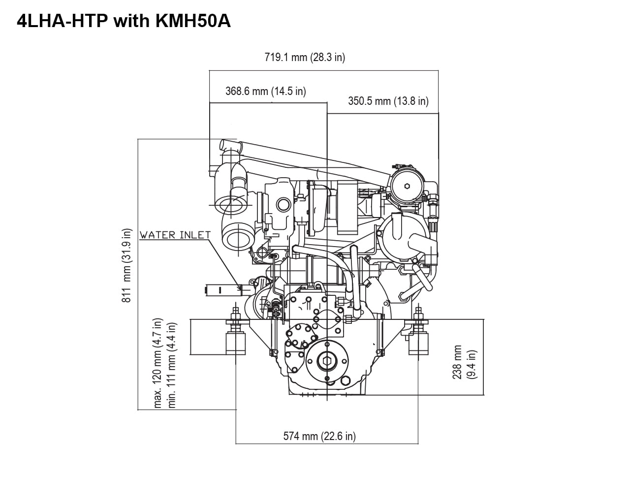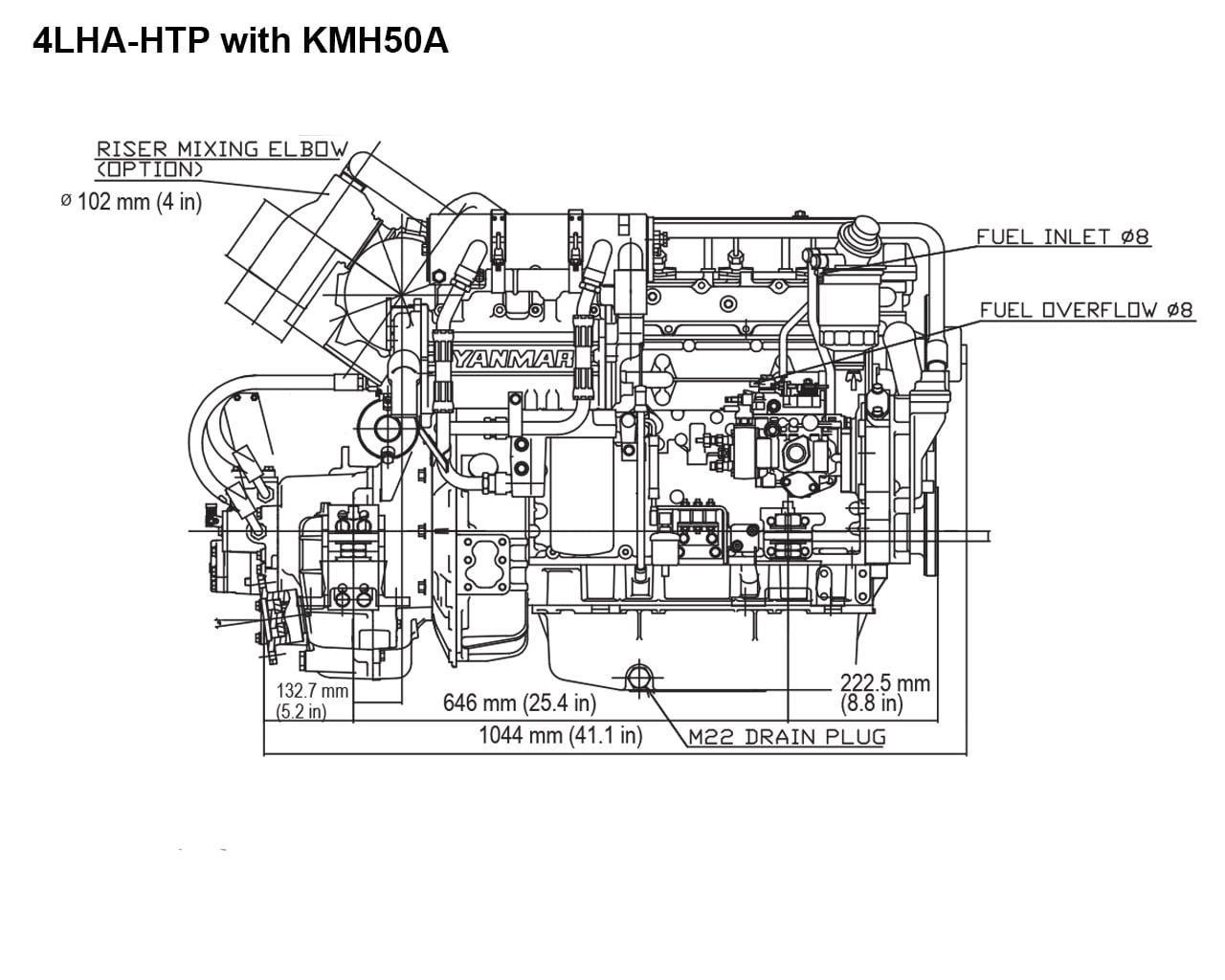 Le dimensioni includono il riduttore KMH50A e il gomito di scarico di tipo L