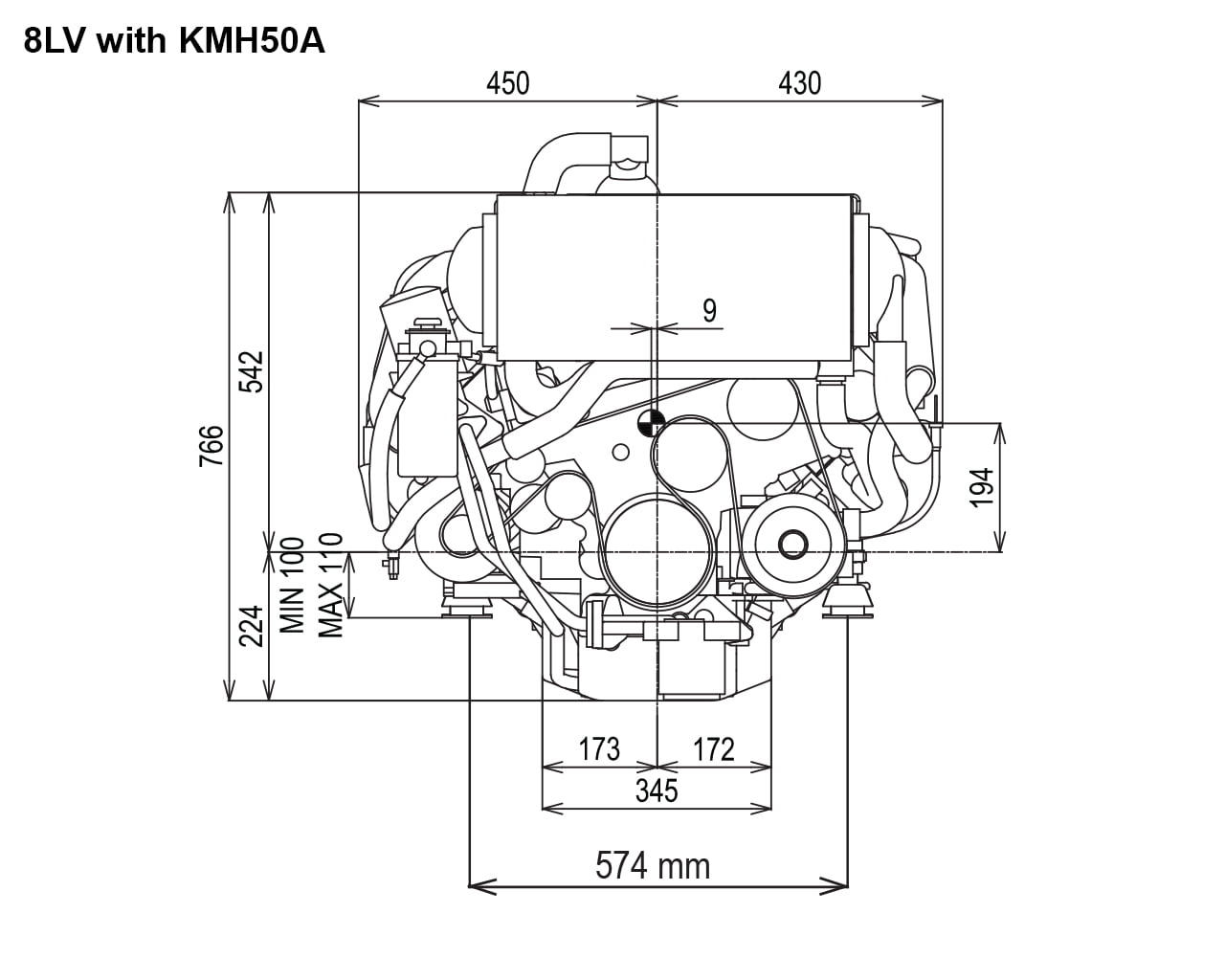 Le dimensioni includono il riduttore KMH50A con gomito di miscelazione standard