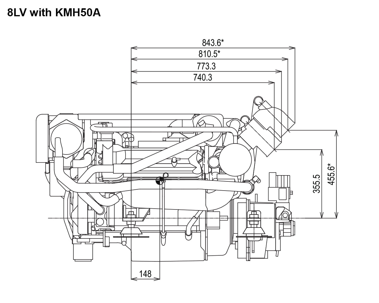 Le dimensioni includono il riduttore KMH50A con gomito di miscelazione standard